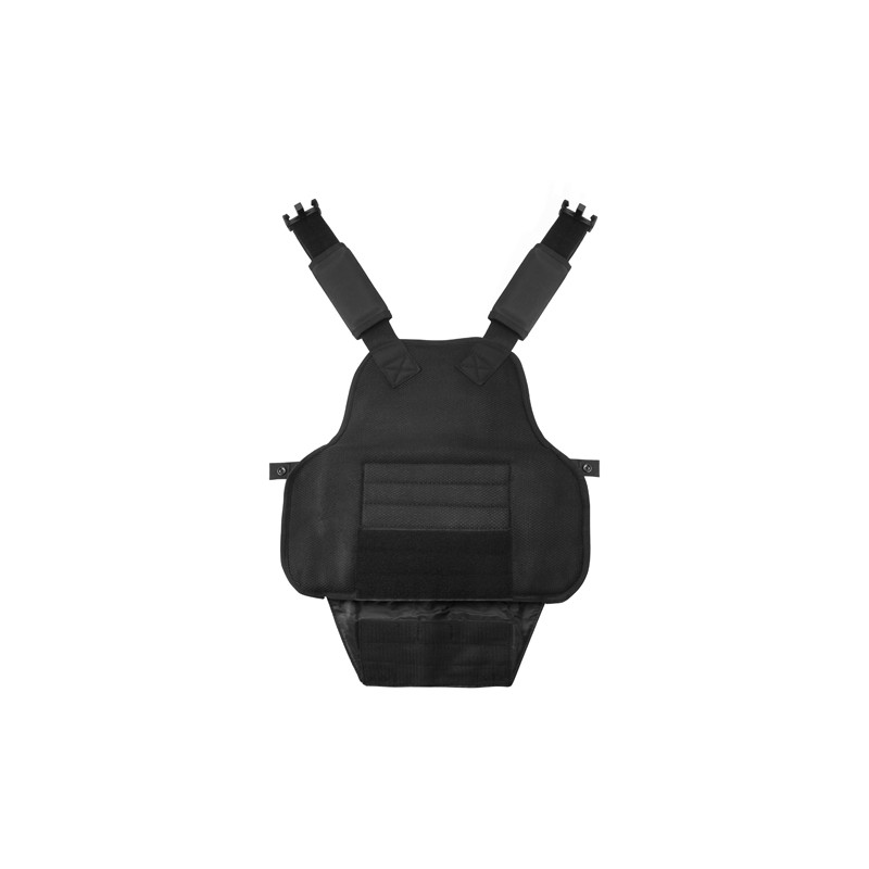 Internal sleeves for body armor plates located on the back and front of the vest (body armor plates not included). Side storage on sides. Adjustable internal cummerbund. One small and one large front pocket located on the front of the vest. Adjustable to fit most adult body types. Tough mesh webbing designed for maximum ventilation and durability. Webbing system to carry additional gear. Front and back velcro areas for attaching ID patches. Reinforced rescue pull handle located on the upper back of vest. Internal mesh pocket for additional items. Detachable shoulder pads.