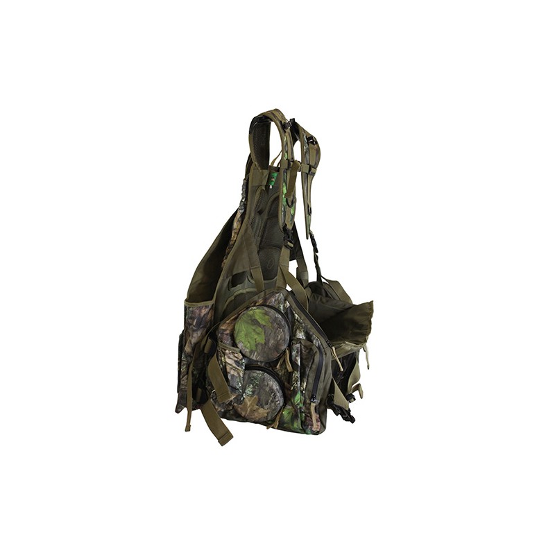 The Rocker Vest is the perfect vest for hunters who want the ultimate in comfortable concealment, smart storage, and durable construction. The flip down lounge seat provides solid, comfortable back support so you can sit in any spot and lean back comfortably without a tree behind you. Molded pot call and box call pockets keep you calls protected and easily accessible. A waterproof cell phone pocket allows you to use your phone without taking it out. Stay cool and quenched with a handy hydration bladder pocket. And keep everything you need in the field organized and at-the-ready with extra pockets gear, calls, and stakes.