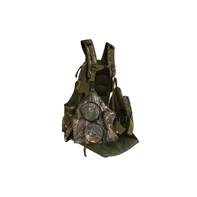 The Rocker Vest is the perfect vest for hunters who want the ultimate in comfortable concealment, smart storage, and durable construction. The flip down lounge seat provides solid, comfortable back support so you can sit in any spot and lean back comfortably without a tree behind you. Molded pot call and box call pockets keep you calls protected and easily accessible. A waterproof cell phone pocket allows you to use your phone without taking it out. Stay cool and quenched with a handy hydration bladder pocket. And keep everything you need in the field organized and at-the-ready with extra pockets gear, calls, and stakes.