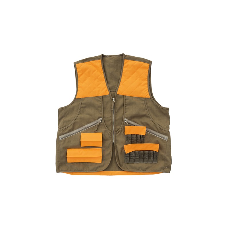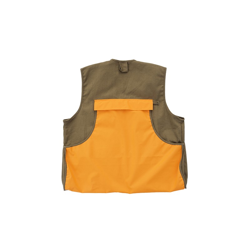 The Spring Upland Hunting Vest from Allen is designed to optimize your day wing shooting. Made from a durable cotton canvas with blaze orange shoulders, pocket covers, and game bag, this vest features 22 elastic shell loops and two oversized zippered front pockets to hold gloves, dog gear, extra ammo, spents, and other essentials. The game bag can be front loaded or back loaded and has a blood-resistant lining and a top zipper for easy unloading. Includes a license holding tag loop on the back.