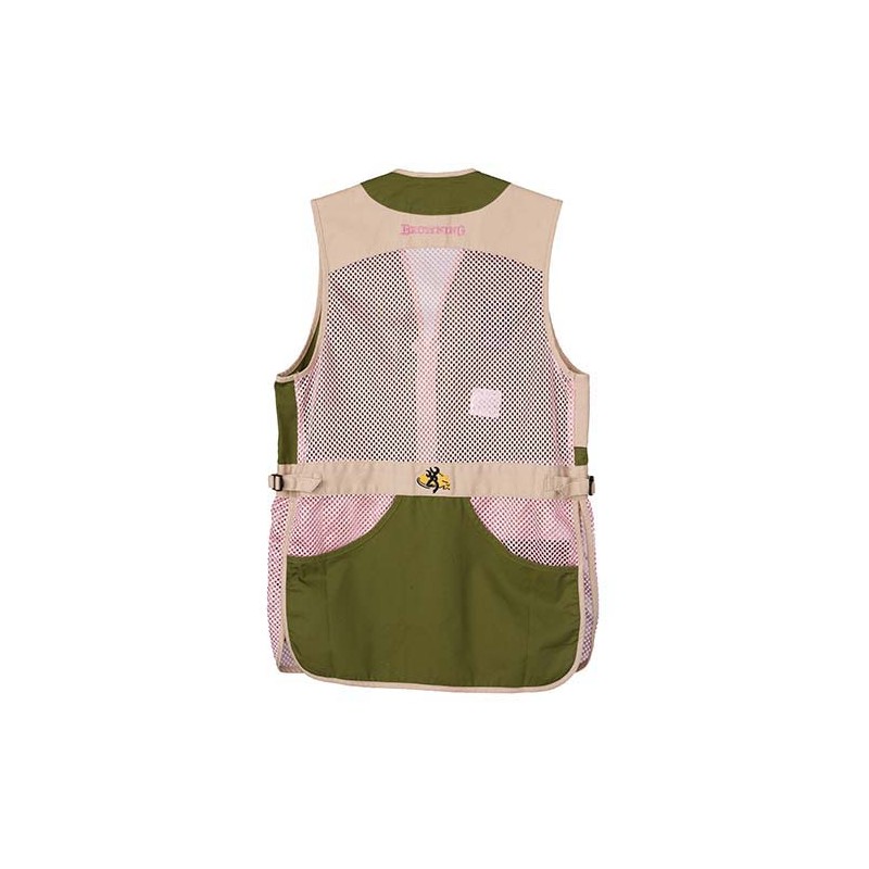 Designed for her, a lightweight breathable mesh shooting vest with a full-length shooting patch, bellows pockets for shells/gear, and a large back pocket for hulls and other gear.